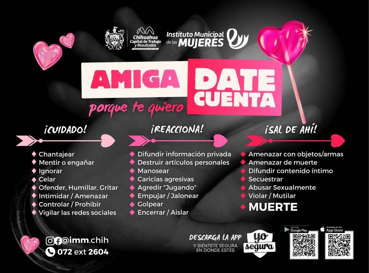 También se advirtió sobre la violencia digital, que incluye acoso constante por mensajes, exigencia de contraseñas o amenazas de difundir contenido privado. Bajo la campaña “Amiga, porque te quiero, date cuenta… No te quedes con quien te violenta”, se busca sensibilizar a jóvenes sobre la importancia de reconocer estas conductas y no justificarlas como muestras de afecto.