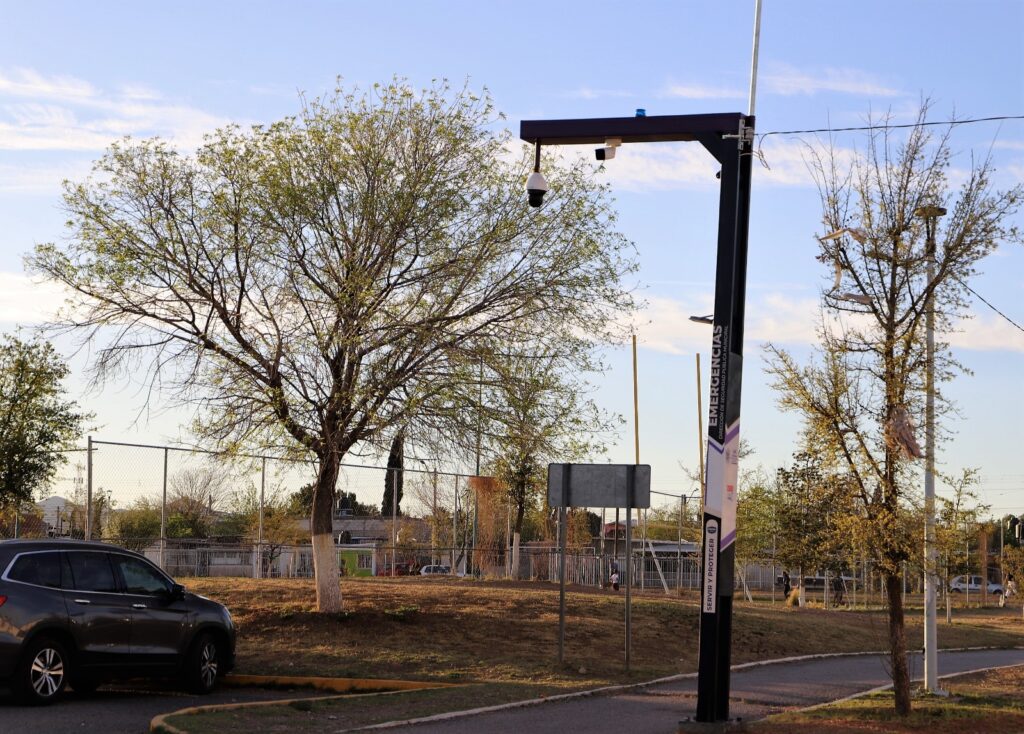 En total, se han instalado 28 de estas estructuras metálicas con un brazo y un sistema de videovigilancia en la parte superior. Forman parte de la tercera etapa de la Plataforma Escudo Chihuahua Capital (PECUU) y están ubicados en áreas públicas concurridas, con el objetivo de brindar ayuda en situaciones de emergencia.