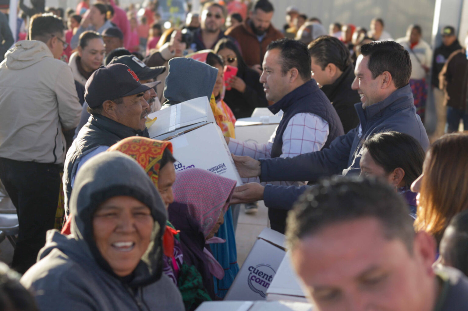 En el evento estuvieron presentes el secretario de Pueblos y Comunidades Indígenas, Enrique Rascón, y el alcalde Jesús Valenciano, quienes encabezaron la entrega de paquetes alimenticios esenciales como parte de una estrategia integral para atender necesidades prioritarias.