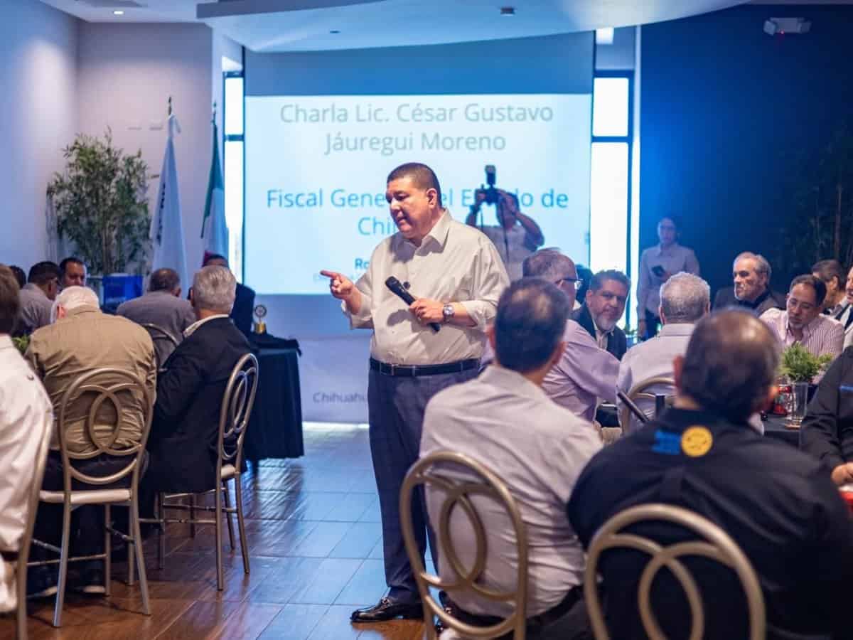 El fiscal general César Jáuregui Moreno sostuvo un encuentro con integrantes del Club Rotario Chihuahua, donde presentó un balance sobre la procuración de justicia en el estado y los avances logrados por la institución.