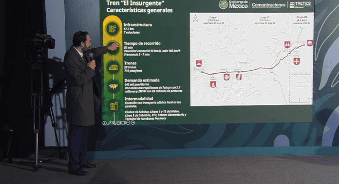 El sistema contará con 20 trenes eléctricos y una demanda estimada de hasta 140 mil usuarios diarios, consolidándose como una alternativa eficiente y segura para la movilidad metropolitana.