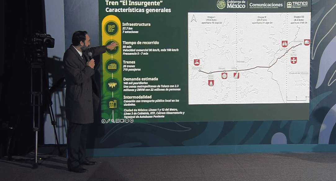 El Gobierno federal inauguró el último tramo del Tren Interurbano El Insurgente, que conecta Santa Fe con la estación Observatorio en la Ciudad de México. Con esta obra se completa la ruta de 57.7 kilómetros entre Toluca y la capital, considerada uno de los proyectos de movilidad más relevantes del país.