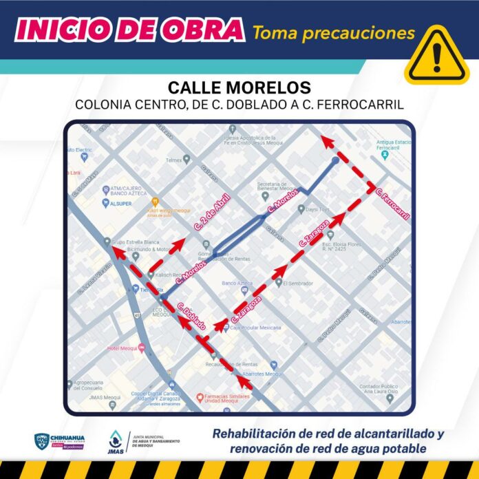 Este mes de diciembre la JMAS exhorta a los transeúntes que circulan por la calle Morelos a tomar rutas alternas, de ellas en la calle Morelos, en el tramo que abarca desde la calle Aldama hasta la calle Ferrocarril y la otra en la cordillera Meoqui – Julimes.