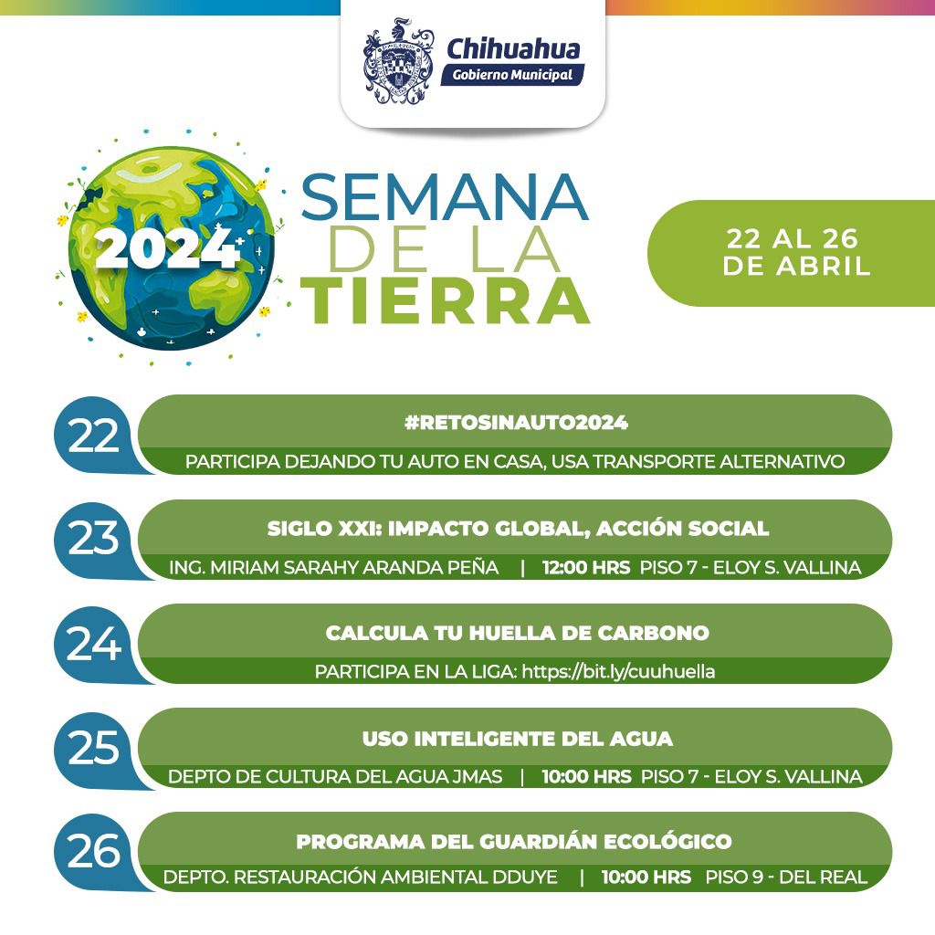 En honor al Día Mundial de la Tierra, la Comisión de Ecología del Ayuntamiento de Chihuahua ha lanzado el #RETOSINAUTO2024, previsto para el próximo lunes 22 de abril. Esta iniciativa anima a los ciudadanos a dejar sus vehículos en casa y optar por medios de transporte alternativos.